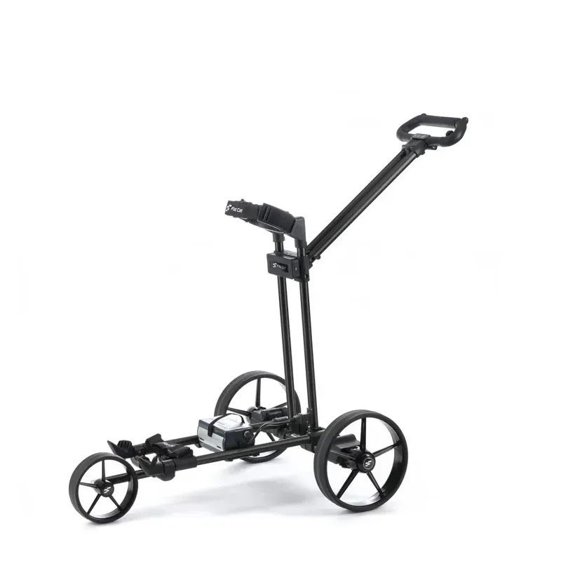 Le chariot Flat Cat Ahead est commandé par un capteur de proximité. Il s'adapte à la vitesse de marche du golfeur et ce de manière totalement intuitive et sans contact. Il est également possible de faire avancer ou suivre le chariot jusqu'à une distance de 50 mètres à l'aide d'une télécommande. Grâce à son capteur de proximité il réagit parfaitement à votre vitesse de marche. Plus besoin de garder la main sur la poignée ou réguler la vitesse au travers du potentiomètre. Il est en plus doté d'une télécommande qui vous permet de le faire avancer jusqu'à 50 mètres. Sa fonction stop and go se manipule au travers d'un seul bouton. Et pour finir le capteur est équipé également d'une connexion USB et ainsi votre Flat Cat chargera tous vos appareils électroniques ( smartphone GPS par exemple) qui pourront être fixés sur notre système de trolley cockpit évolutif.