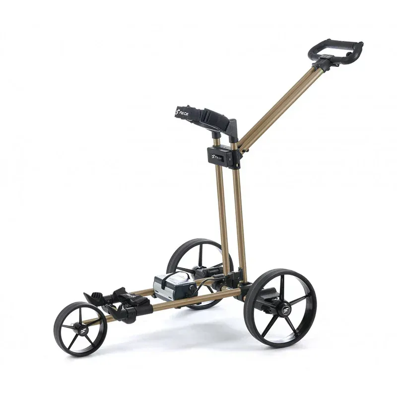 Le chariot Flat Cat Ahead est commandé par un capteur de proximité. Il s'adapte à la vitesse de marche du golfeur et ce de manière totalement intuitive et sans contact. Il est également possible de faire avancer ou suivre le chariot jusqu'à une distance de 50 mètres à l'aide d'une télécommande. Grâce à son capteur de proximité il réagit parfaitement à votre vitesse de marche. Plus besoin de garder la main sur la poignée ou réguler la vitesse au travers du potentiomètre. Il est en plus doté d'une télécommande qui vous permet de le faire avancer jusqu'à 50 mètres. Sa fonction stop and go se manipule au travers d'un seul bouton. Et pour finir le capteur est équipé également d'une connexion USB et ainsi votre Flat Cat chargera tous vos appareils électroniques ( smartphone GPS par exemple) qui pourront être fixés sur notre système de trolley cockpit évolutif.