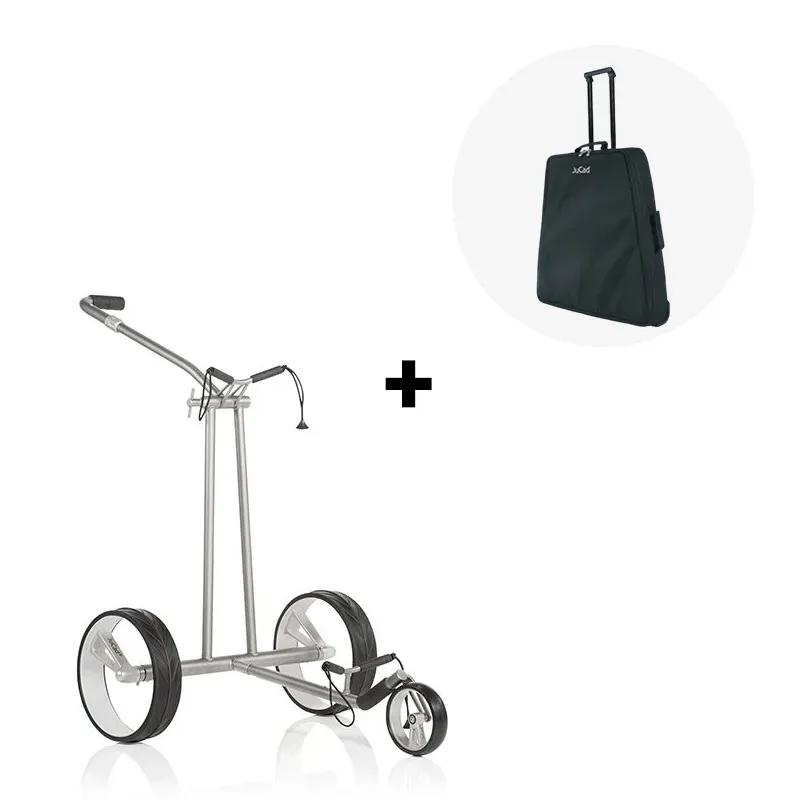 Le modèle JuCad Phantom Titan 2.0 vous sera proposé avec ses accessoires exclusifs JuCad. Ce chariot électrique avec ses jantes à rayon unique en carbone est livré avec une télécommande JuCad et un sac de transport.