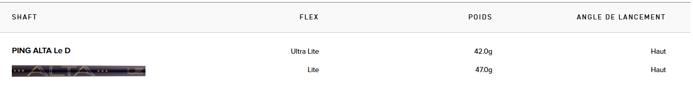 - Shaft ALTA LE ultra-léger conçu pour faciliter la vitesse de swing