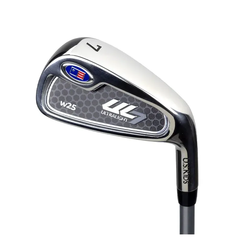 Les fers UL7 sont spécialement conçus pour les jeunes golfeurs recherchant tolérance, légèreté et facilité de jeu. Grâce à leurs têtes 25 % plus légères et à leurs shafts en graphite K-Flex, ils favorisent un swing fluide et une trajectoire régulière. Disponibles en trois lofts — 38°, 44° et 48° — ces clubs accompagnent parfaitement la progression du joueur en offrant hauteur de balle, contrôle et distance adaptés à chaque coup. Idéal pour les enfants mesurant entre 107 et 114 cm, le set UL7 assure un confort optimal et une prise en main naturelle.