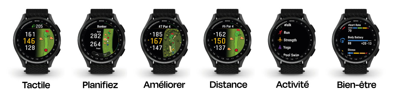 La montre GPS Approach S50 est conçue pour maîtriser votre jeu sur le parcours et au-delà. Dotée d'un écran AMOLED lumineux de 1,2", elle intègre plus de 43 000 parcours préchargés et tous les outils nécessaires pour améliorer votre performance au golf. La fonction de caddie virtuel recommande le club à utiliser selon vos habitudes de jeu et les conditions du parcours, tandis que la fonction PlaysLike Distance ajuste vos distances en tenant compte du dénivelé. Les contours du green préchargés vous fournissent des informations sur la pente et la direction du green avant le trou.