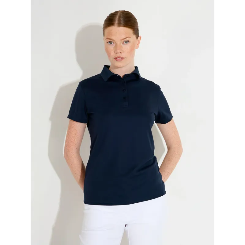 Notre polo de golf préféré. Polo bleu marine pour femme, confectionné dans une matière confortable, extensible et souple. Il évacue l'humidité et bénéficie de la technologie DryCool, une matière qui laisse la peau respirer. Le polo Cray DryCool possède un col classique et des boutons sur le devant. Un polo intemporel, toujours agréable à porter !