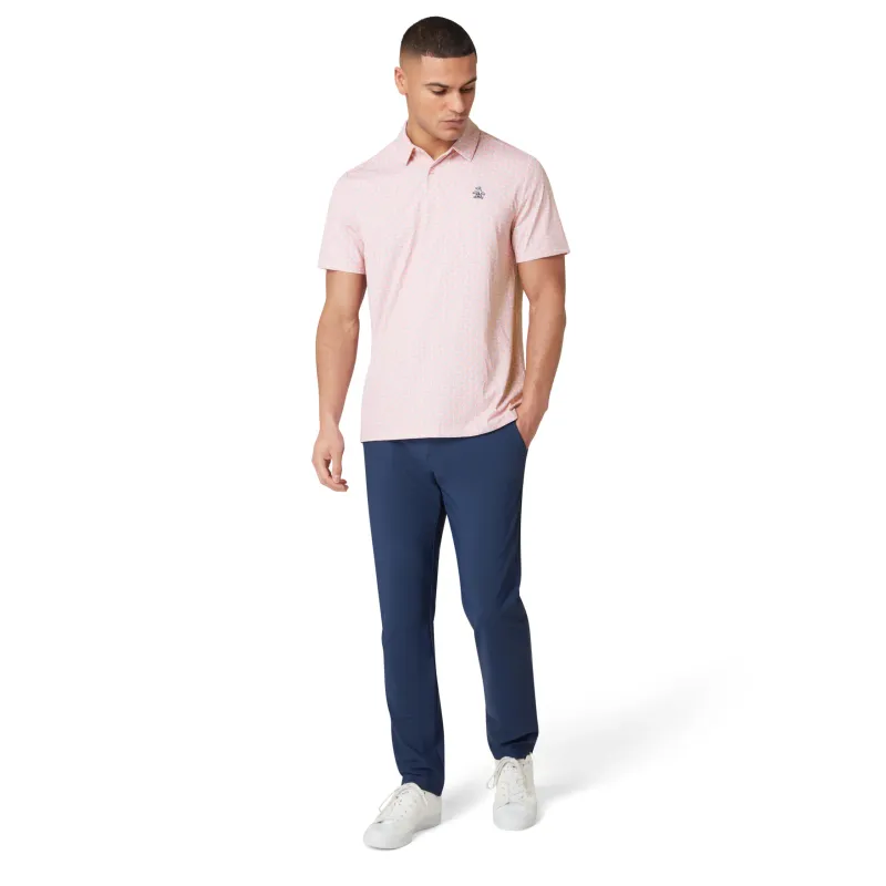 Améliorez votre garde-robe de golf avec ce polo pour homme Original Penguin arborant un imprimé intégral amusant. La fabrication en tricot simple crée une sensation de légèreté, tandis que l'élasticité supplémentaire offre un ajustement confortable et flexible. Lorsque la chaleur monte, les propriétés d'évacuation de l'humidité vous assurent de rester au sec. Associez ce polo haut de gamme pour homme à votre short ou pantalon de golf préféré pour un look qui ne manquera pas de marquer des points en matière de style.