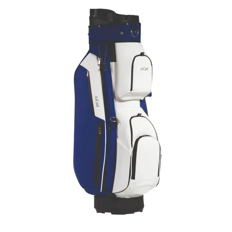 Ce sac de golf haut de gamme avec une finition en cuir hydrofuge offre une fonctionnalité de premier ordre avec une sensation de luxe. Son organiseur adapté au manche empêche le cliquetis des clubs de golf, garantissant un jeu sans stress sur le fairway. Les deux poches avant sont facilement accessibles grâce à des fermetures magnétiques, tandis que la poche supérieure à fermeture magnétique offre un accès ultra-rapide (parfait pour votre télémètre) et peut également être fixée avec une sangle Velcro pour dissimuler les attaches du sac en dessous. Le compartiment spacieux pour boissons est également doté d'une fermeture magnétique pour un accès rapide. Les objets de valeur sont rangés dans une poche intérieure zippée et de nombreuses poches pour accessoires améliorent encore le confort pendant votre jeu. Découvrez le nouveau sac de golf Jucad.