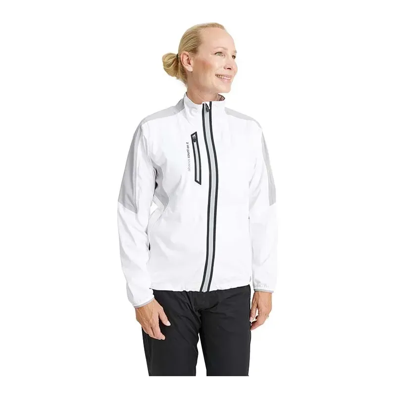 La veste de pluie Bounce pour femmes est fabriquée dans un tissu imperméable extensible dans les 4 sens, qui est également très respirant. Toutes les coutures sont scellées à l'aide d'une bande souple et flexible. Le matériau est composé de trois couches, avec le même tissu doux et extensible à l'extérieur qu'à l'intérieur, et une membrane fonctionnelle collée entre les couches. Cette couche empêche la pluie de pénétrer et permet à la chaleur de votre corps d'être transportée vers la surface où elle s'évapore. Il n'y a pas de doublure dans cette veste en raison de la douceur de l'intérieur, ce qui donne une sensation très confortable pendant le jeu. La veste est équipée d'une fermeture à glissière imperméable sur le devant, d'une poche sur la poitrine et de deux poches sur le devant. Le logo Abacus est apposé dans le cou et le long de la poche de poitrine.